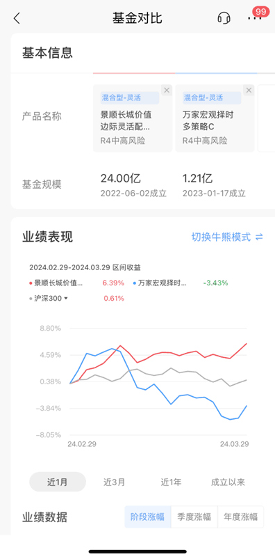 两只基金分化,其原因是资源板块内部轮动。1、2份煤炭领涨申一级31个板块,涨幅逾14%,3开启调整,有色金属板块接棒,大涨逾12%。经过3调整,煤炭本周已有所企稳。