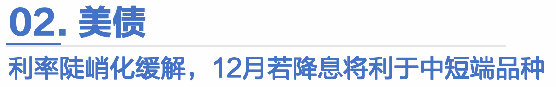 3年期美债强劲得益于两方面,一是美联储12暂停缩表预期,缓解了流动性压力,货基等配置盘场;二是当3.5%左右票息收益仍具吸引力,如果12降息能够落,中短端品种会成为平衡票息和资本利得较优选择。