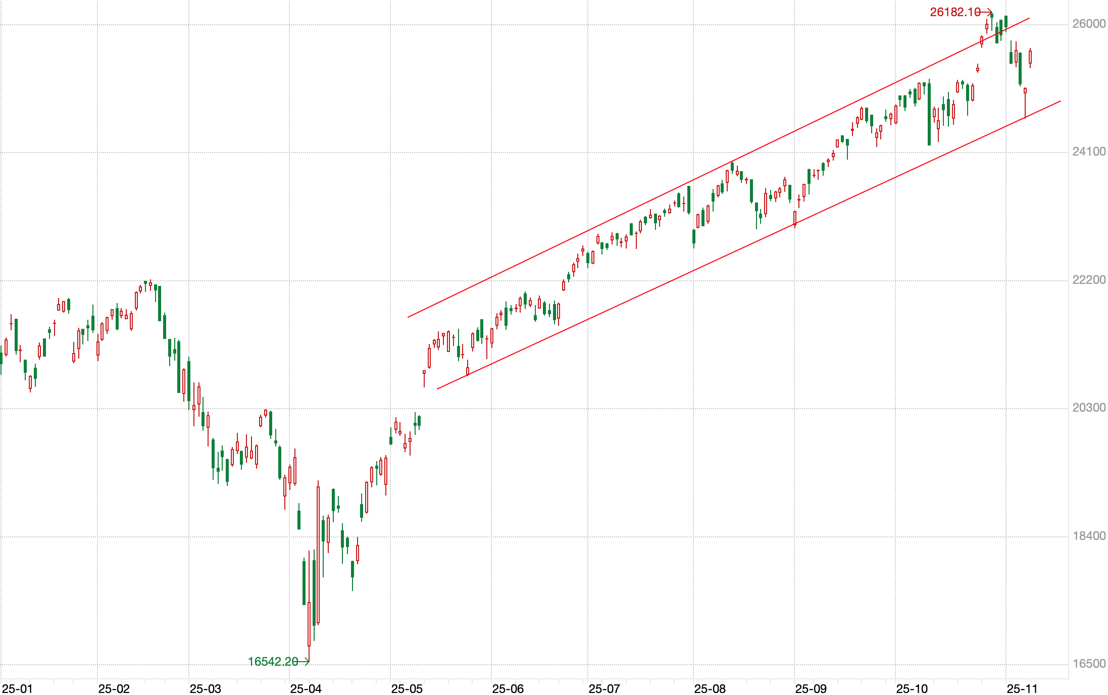 纳斯达克100指数年初以来走势;资料来源:Wind,截至2025-11-10