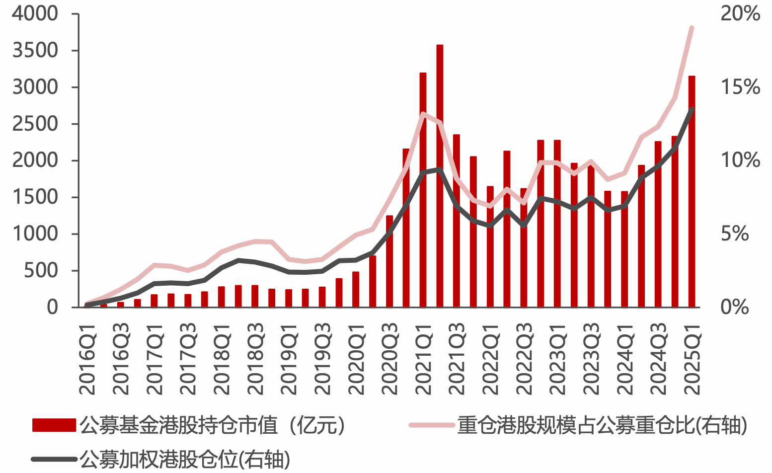 内公募基金港股仓位情况;资料来源:Wind、民生证券研究院