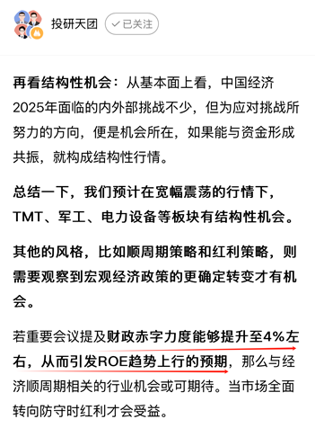 此,天团提,结构性机会可能在高弹性方向,一个是代表新质生产力科技;另一个是困境反转方向:如供给侧收缩清新能源,以及追赶十四五规划,需求侧改善军工。黄行也提,新能源是长期看方向。
