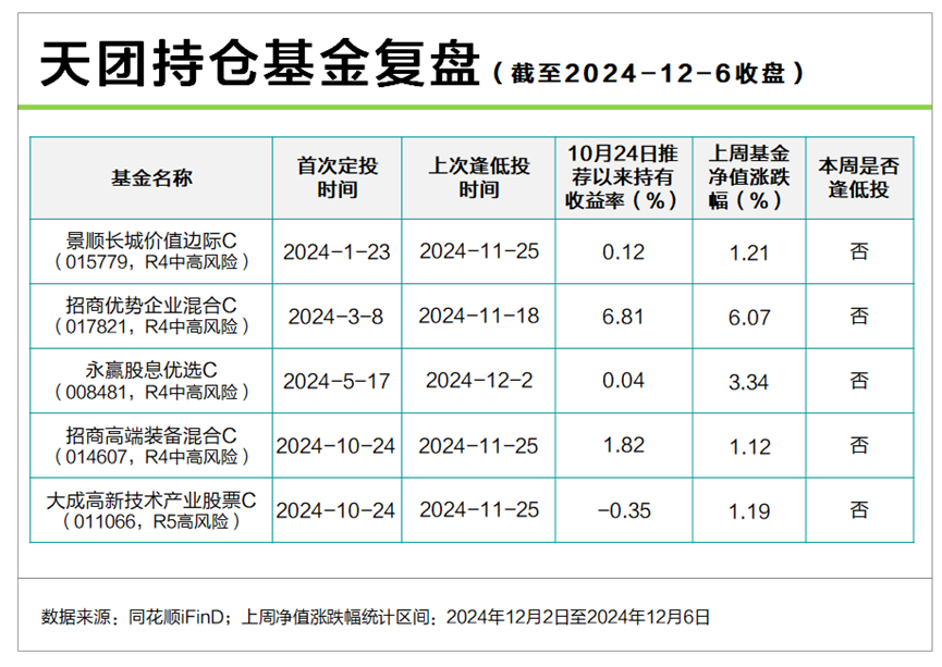 因此,本周仍需要注意防风险,注意均衡配置,等待持仓基金现逢低投机会再手。