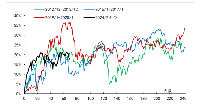 比历次熊市结束1年内走势,2013、2016和2019年这三年有很大共性:年初第一个季度大涨20%-35%,之在第二个季度进明显回撤,半年随着盈利和增量资金继续现乐观变化,再次现缓慢涨。今年如果重演这种情形,目看指数在时间还未跌完,但空间已不大: