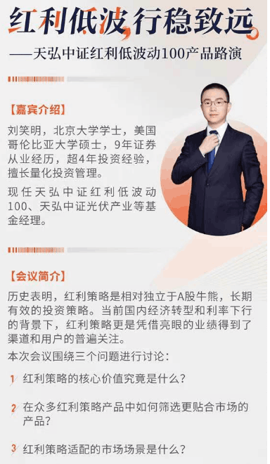 周四,天弘红利低波(A类:008114,R5高风险)基金经理进行了一场路演: