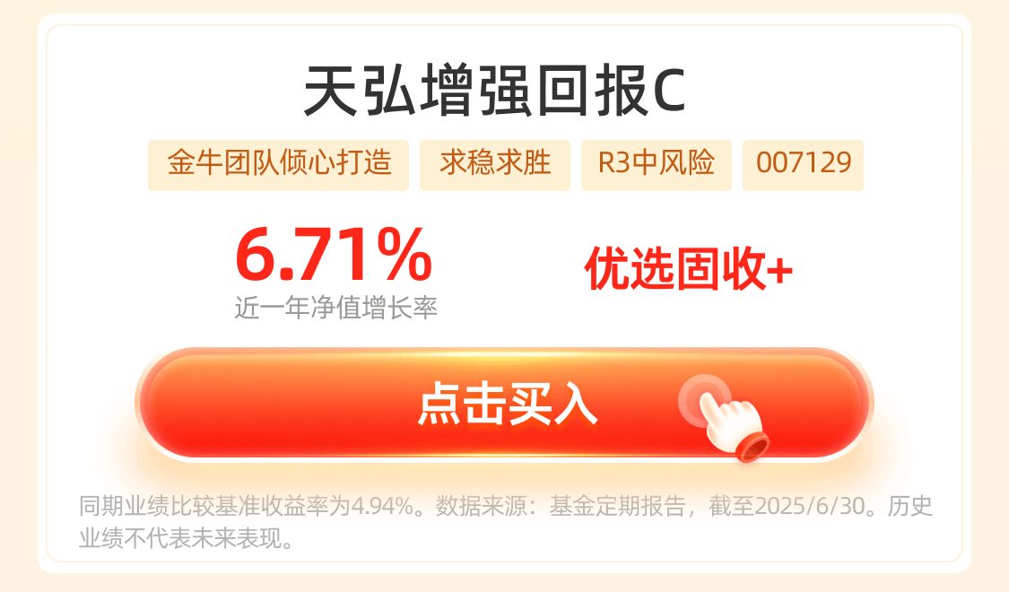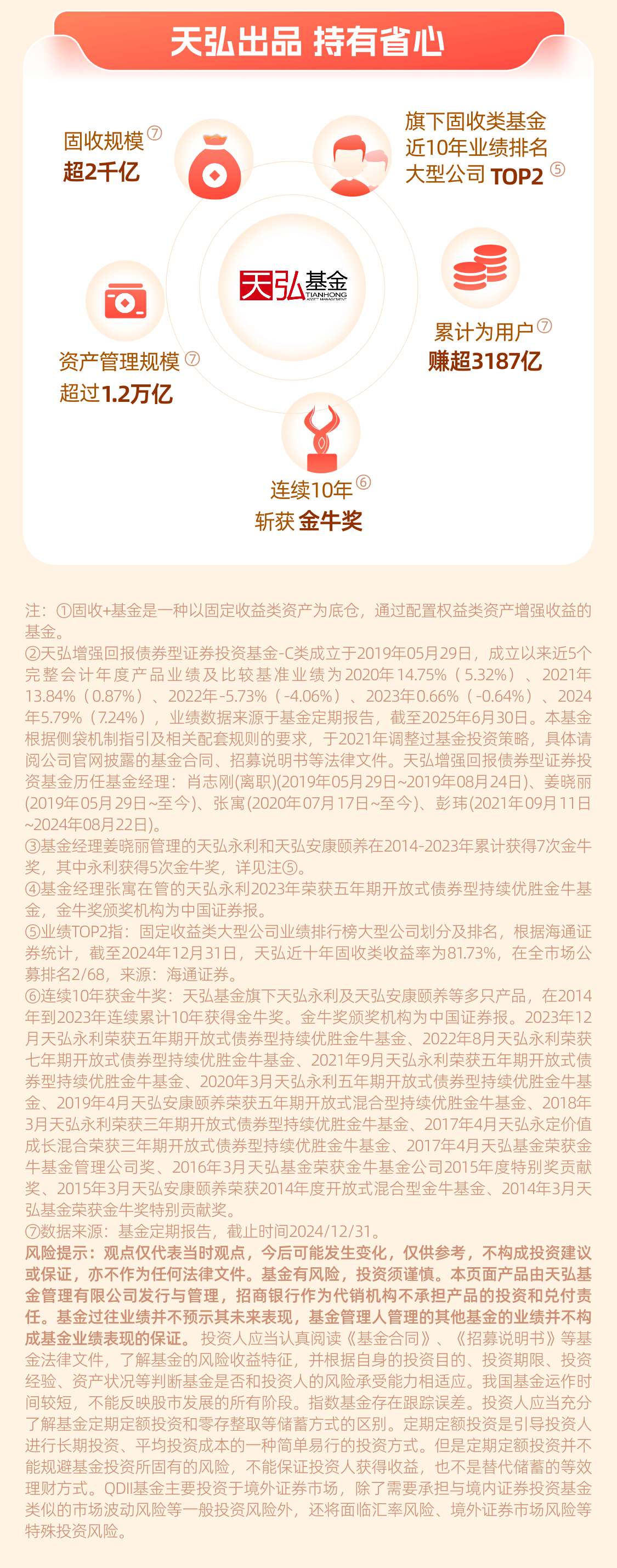 风险提示:活动详情见活动详情页。本文观点仅代表当时观点,今可能发生变化,仅供参考,不构成投资建议或保证,亦不作为任何法律文件。基金有风险,投资须谨慎。本页面产品由天弘基金管理有限公司发行与管理,商行作为代销机构不承担产品投资和兑付责任。基金过往业绩并不预示其未来表现,基金管理人管理其基金业绩并不构成基金业绩表现保证。投资人应当认真阅读《基金合同》、《募说明书》等基金法律文件,了解基金风险收益特征,并根据自身投资目、投资期限、投资经验、资产状况等判断基金是否和投资人风险承受能力相适应。基金运作时间较短,不能反映股市发展所有阶段。