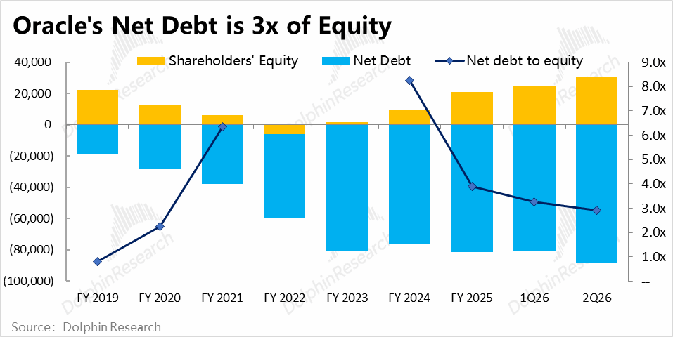 然而由于一些历史原因,公司库存现金相当有限,截至2Q26不到$200亿,且目净负债已是股东权益近3x,而真正Capex和发债高峰期甚至还没到来。