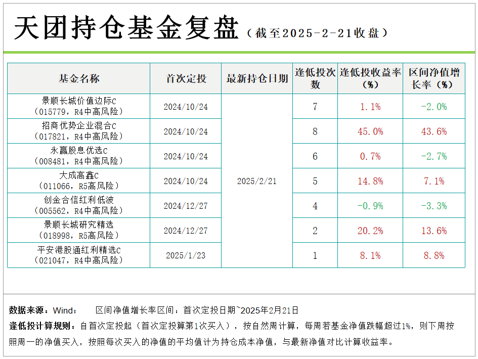 补充说,很多团友问逢低投到底怎么做,其实表中已写明了方法。这里再重点说明:逢低投就是自首次定投起(首次定投算第1次买),按自然周计算,每周若基金净值跌幅超过1%,则周按照周一净值买。表中逢低投收益率,就是按照每次买净值平均值计算持仓成本净值,再与最新净值比得到收益率。各位团友逢低投,还有啥疑问,可以给们留言。