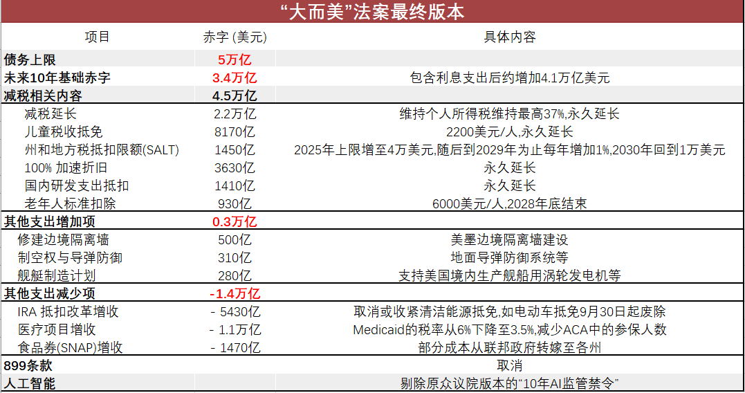 “大而美”法案要点;资料来源:CFRB、中金公司研究部