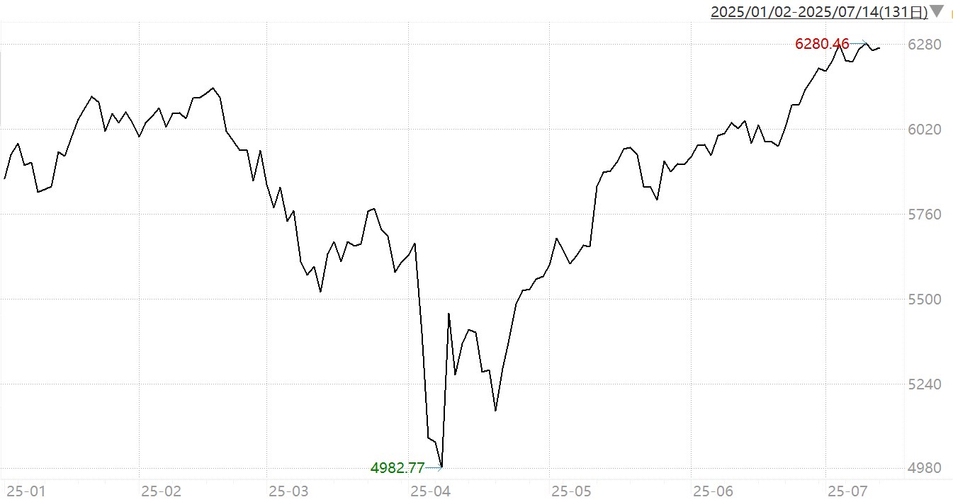标普指数今年以来走势;资料来源:Wind,截至2025-7-14