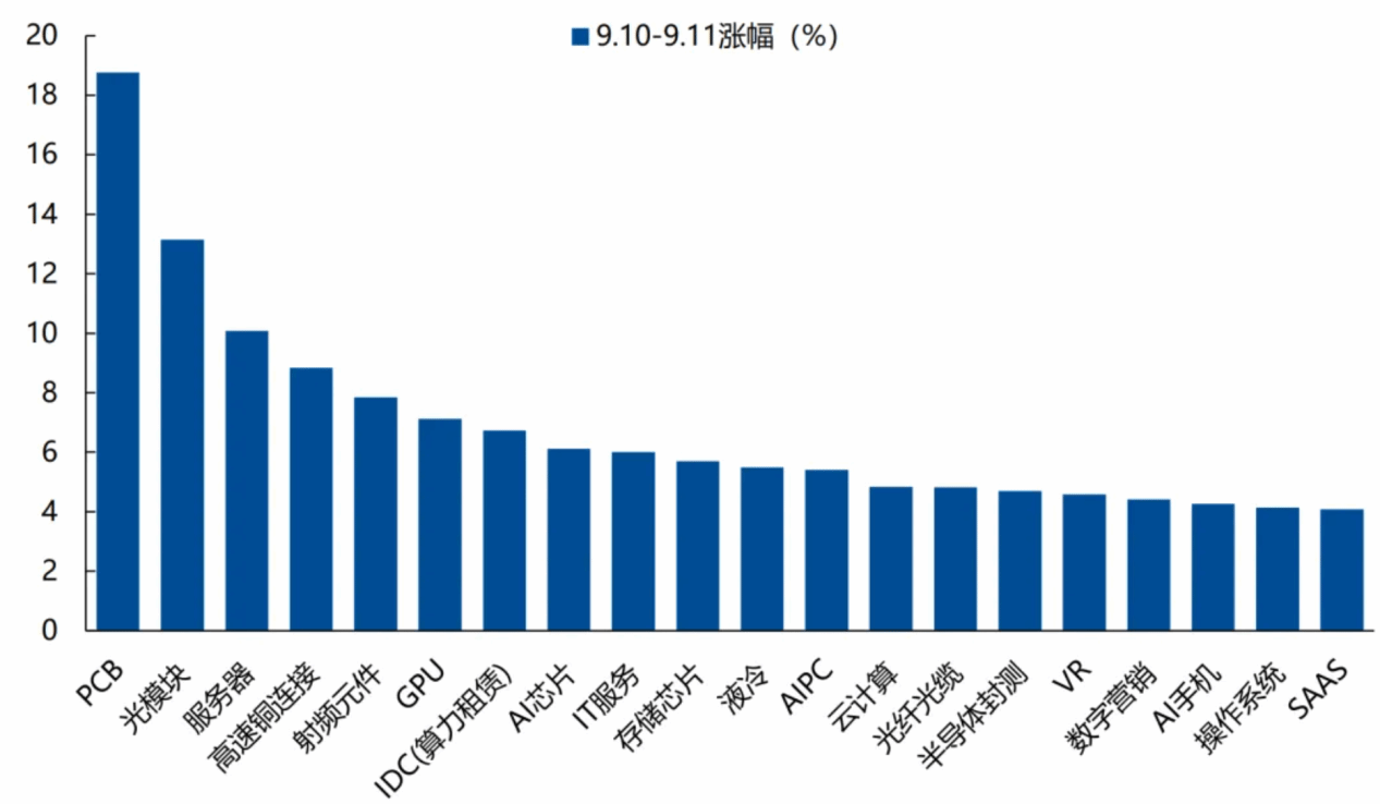 9/1~9/11 AI产业链各细分方向涨跌幅;资料来源:Wind、兴业证券