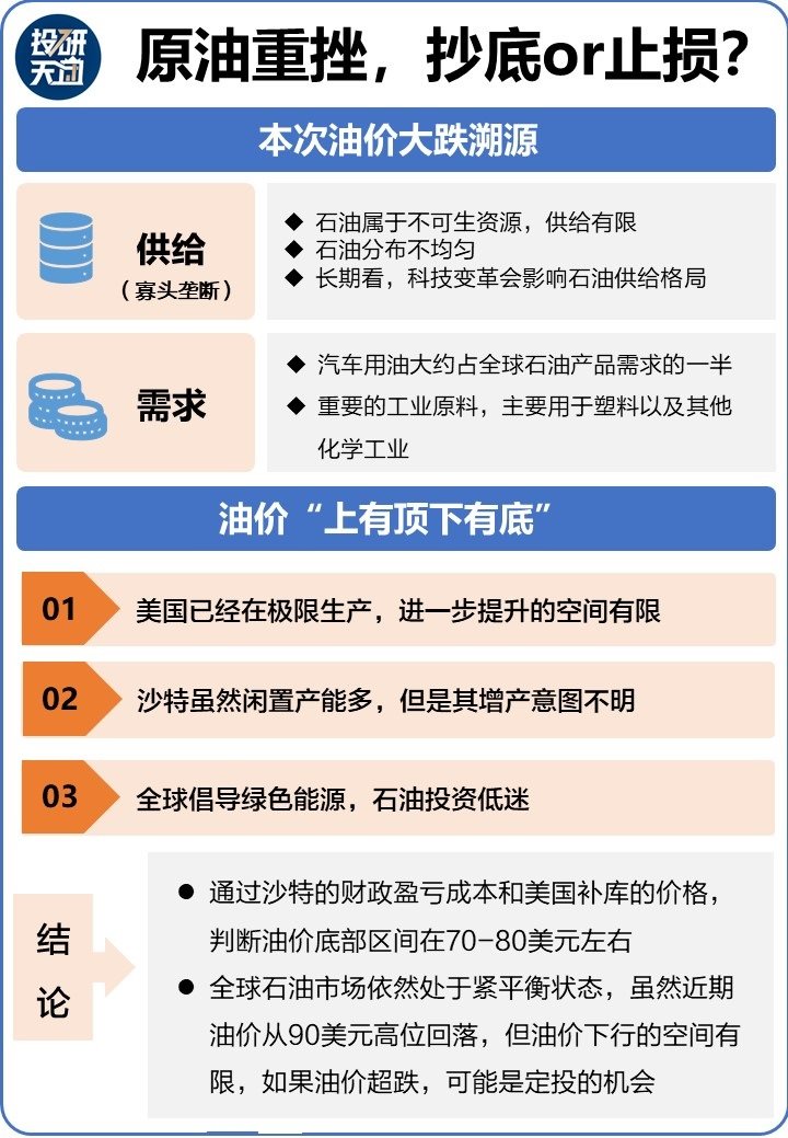 综几点,全球石油市场依然处于紧平衡状态,虽然近期油价从90美元高位回落,但油价有底,这意味着油价行空间有限,如果油价超跌,可能是定投机会。