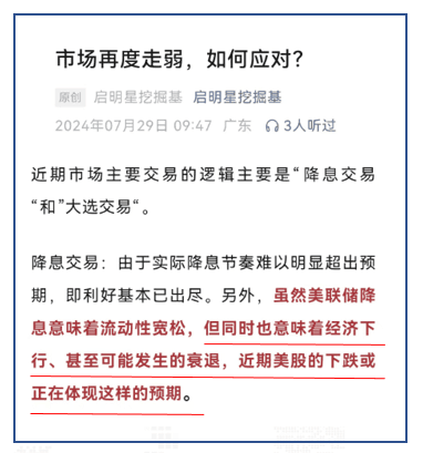 接来们要重点观察是:美是否会真衰退?如果衰退,衰退程度有多深?以及美联储降息幅度和次数如何?以及科技产业周期何时爆发?