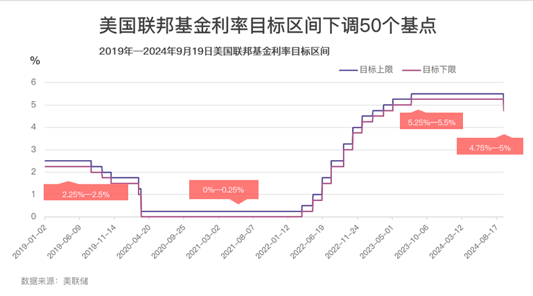 在结束了两天议息会议之,美联储将政策利率调50个基点,降至4.75—5%。