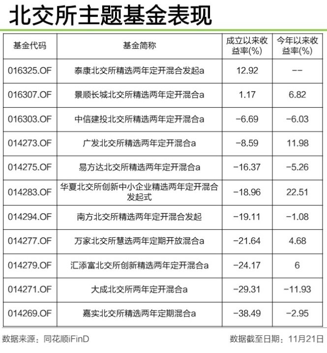 目,投资北交所有11只主题基金(均为两年期定开混合产品)、12只指数基金。