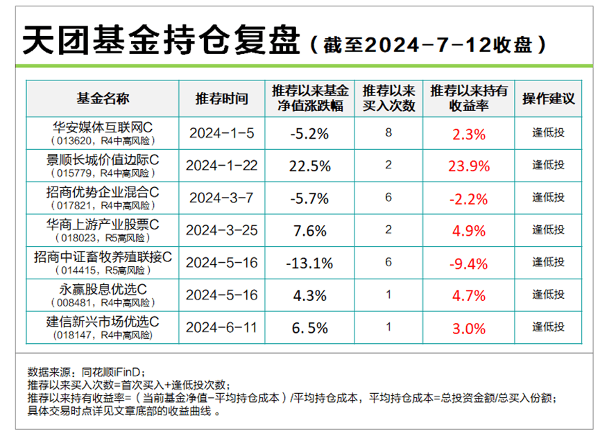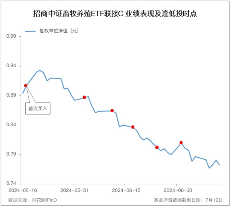 之们连续逢低投商中证畜牧养殖ETF联接C,一期推荐中,们强调了仓位管理重要性。这只基金仓位,最控制在10%左右。如果买多了,可以在反弹阶段适当减仓,同时补充红利基金仓位。