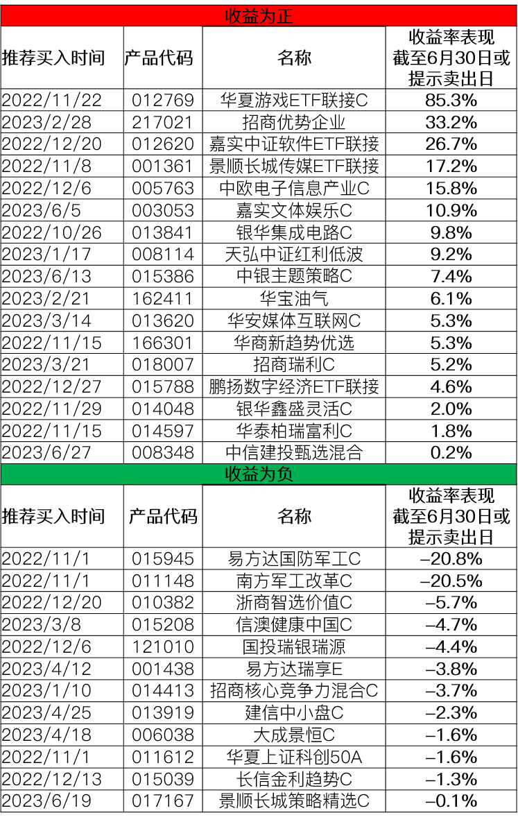 推荐基金“红黑榜”