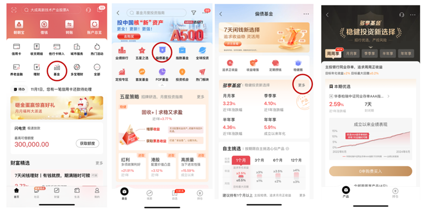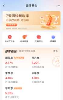 打开行App“首页-基金-偏债基金-更多-周周享”就可以找到周周享。