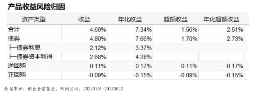 注:创金合信鑫利C收益率来源于基金定期报告,数据截至2023年1231,产品成立于2020.01.17,业绩比较基准为:中债综合指数收益率×80% +沪深 300 指数收益率×20%。2020、2021、2022、2023年收益率为26.53%、0.01%、3.28%、5.52%,同期业绩比较基准为4.93%、0.87%、-4.06%、-0.64%。