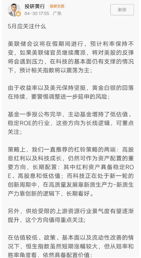于A股,继续保持红利资产和成长轮动策略不变,继续杠铃配置即可,观点与之没有太大变化,因为市场正沿着们预判发展着。