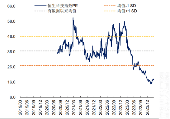 1、2时,恒生科技指数估值达到新低(TTM P/E~16),呈现极度悲观预期: