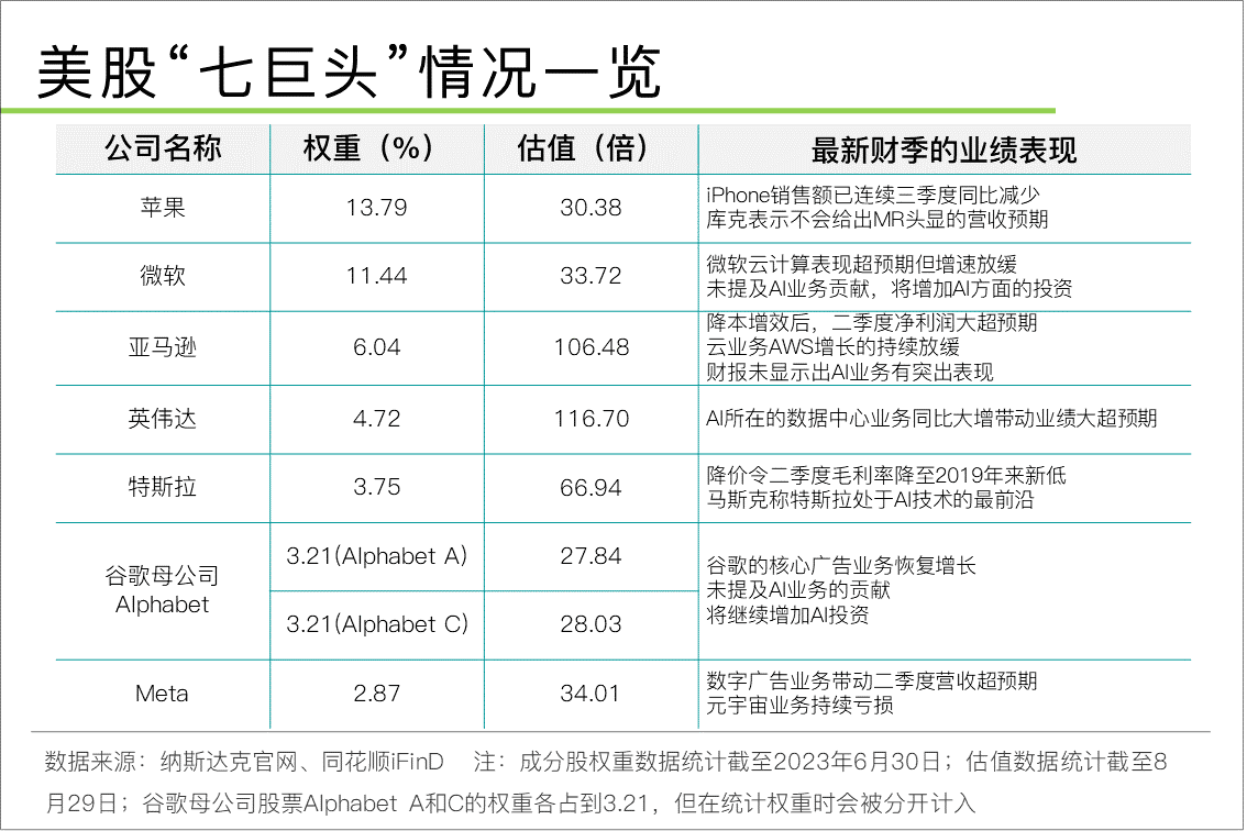 近年来,纳指成分股强者愈强,“七巨头”已占据纳指近一半权重。可以通过“七巨头”最新财报业绩,来观察这一变化。