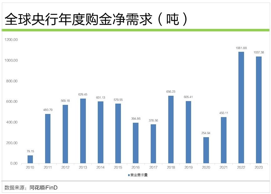 第二类则是全球央行,从2008年美第一次采用量化宽松之,全球央行就开始增持黄金,过去两年,全球央行加快了购金步伐。据世界黄金协会统计,2023年,全球央行连续第二年购买黄金超过1000吨。截至今年3,中央行连续17个增持黄金储备。