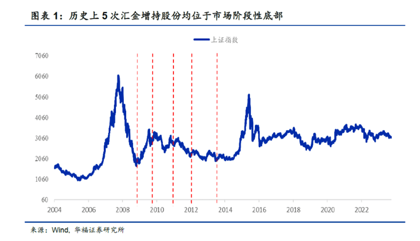 从历史看,汇金公司曾5次通过公开市场增持有大行股份,每次都是在市场低迷阶段,说白了,就是在底部。