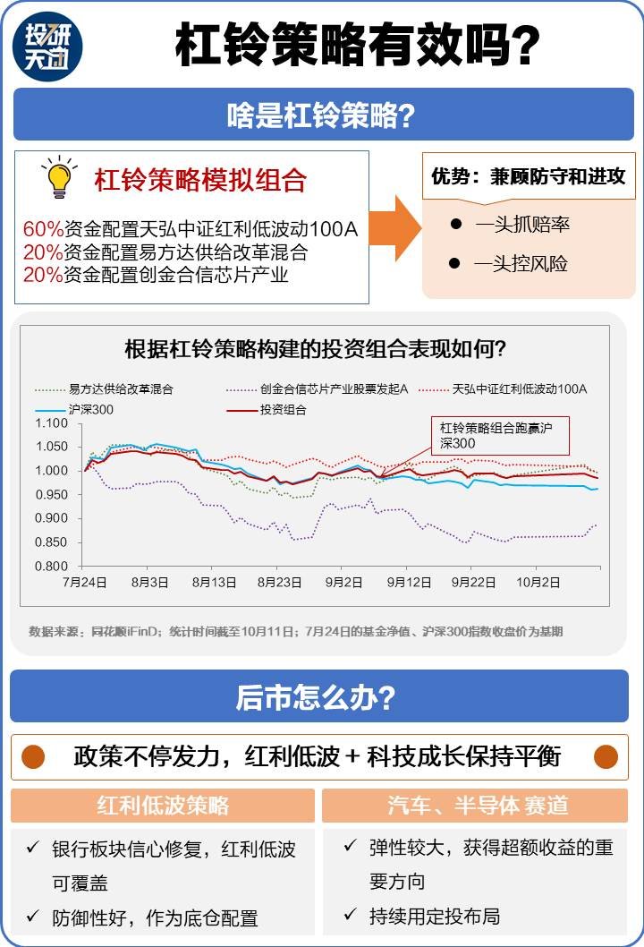 以分析,都是告诉您市场正在逐渐变,但不代表现在要立即全仓抄底。在筑底期间,大盘缺乏增量资金,这个时候们要做就是乐观等待。所以,杠铃策略就很值得尝试,其“两头”可能会此消彼长,彼此平衡就能控制回撤。红利低波 + 科技成长,控制仓位,乐观等待曙光到来。