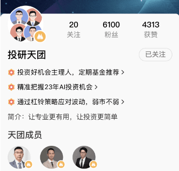们天团成员中,还有专攻行业选基翔指导,量化小能手荒野之鹰老师,们都在这里等着大家。