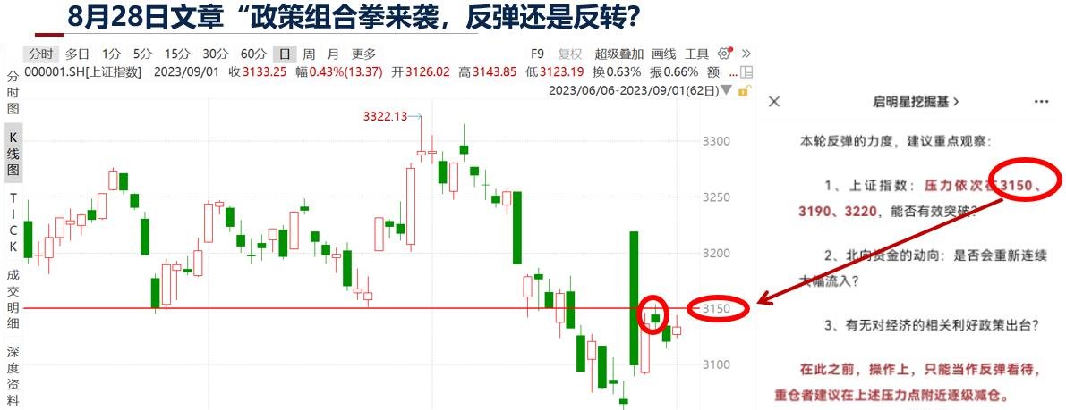 反弹能否延续?周文章中给重点观察三个指标,其中第一条中提到3个阻力中第1个3150尚未突破(周最高3153),且正是在这个位置遇阻回落:
