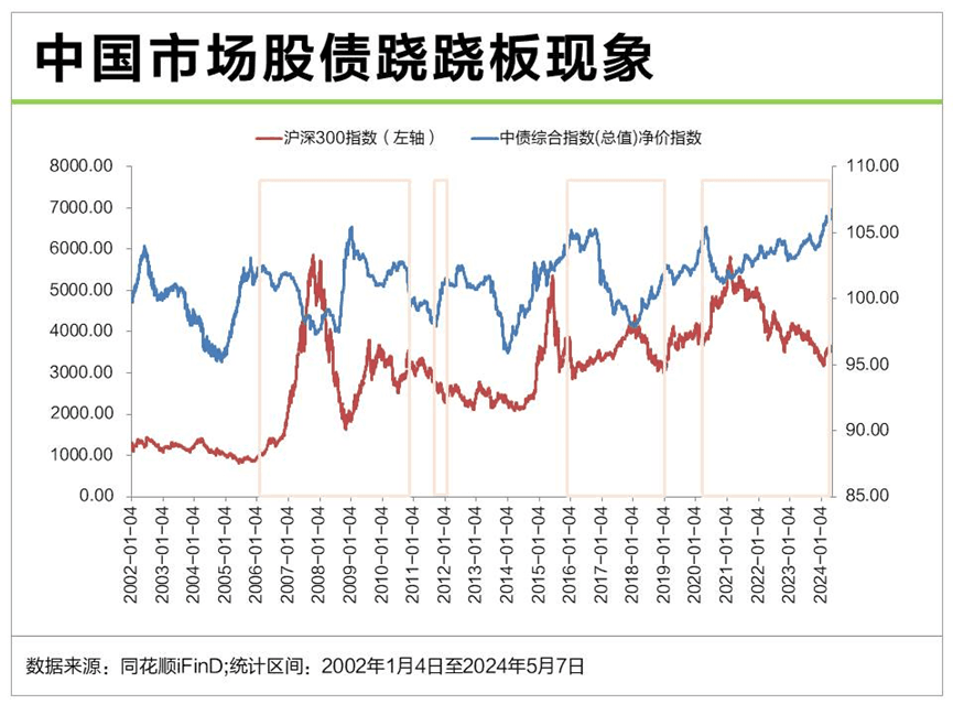 股债两个市场强弱转换,一边起来另一边就落,这种资本市场中现象被形象称为“股债跷跷板”。