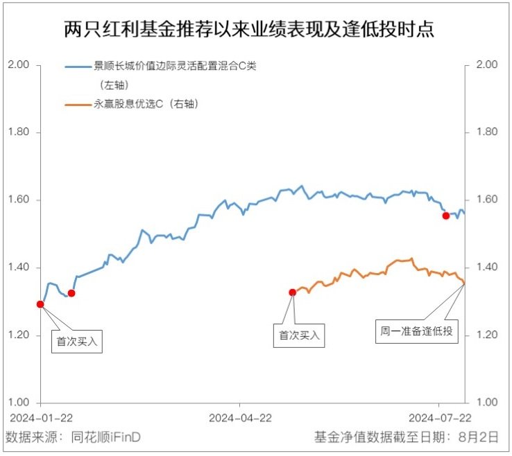 应到两只红利基金,如果团友有资金且遇到逢低投机会,想补仓红利基金,建议可以更加偏重永赢股息优选C。(详见:《天团策评:红利连续调整,是否补仓?》)
