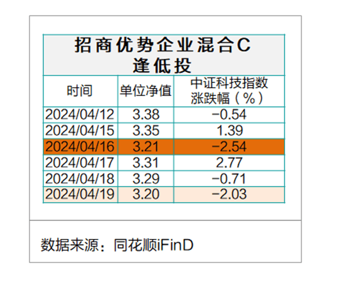 412之,们投资节奏改为逢低投,即应中证科技指数当14:30跌幅超2%时,们就买一笔。第一次逢低投时机是416,当买300元,平均持仓成本降至了3.46元/份,降成本效果显著。当周还现一次机会,如果有精力,也可以再次逢低投,降低成本效果会更加明显。