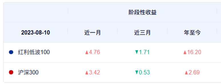 特质一:具备抗跌属性,避险能力强。中证红利低波100指数是从过去三年平均股息率(股息/股票价格)最高300只股票中,选取过去一年波动率最低100只股票。简而言之,红利低波配置都是高股息、低估值、低波动股票,避险能力不必多说。