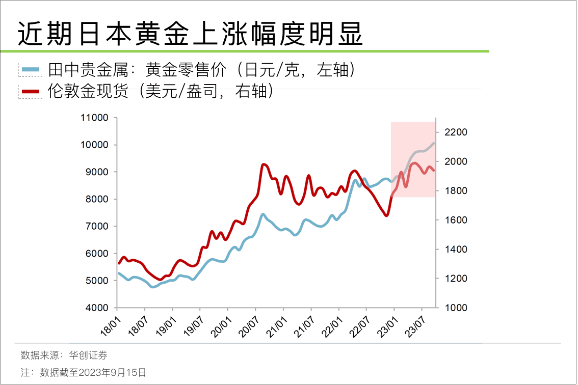 一方面,中央行持续购金,加剧黄金供需紧张。截至2023年8底,央行黄金储备为2165.42吨,较7末涨约28.93吨,央行已连续第十个增持黄金储备。