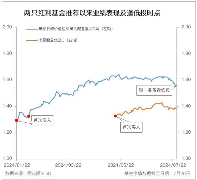 们持仓两只红利基金具有互补性,在周调整中,重仓公用事业永赢股息优选C表现尚可。景顺长城价值边际灵活配置混合C周跌幅超2%,达到逢低投条件。