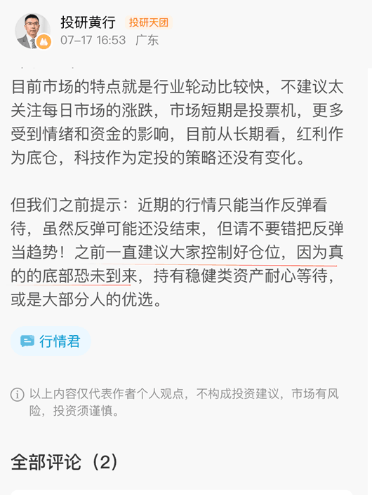 7以来市场整体偏弱,投资者心态和持仓又经历了一轮考验。如果大家实在担心,这段时间就先按兵不动,或者选择固收类等稳健类资产,避免市场进一步跌风险,保持足够耐心和资金,等待市场走底部之,采取右侧建仓策略。