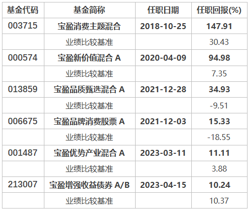 除了宝盈品质甄选混合外,杨思亮管理其基金业绩同样较优,尤其是消费主题基金,可重点关注: