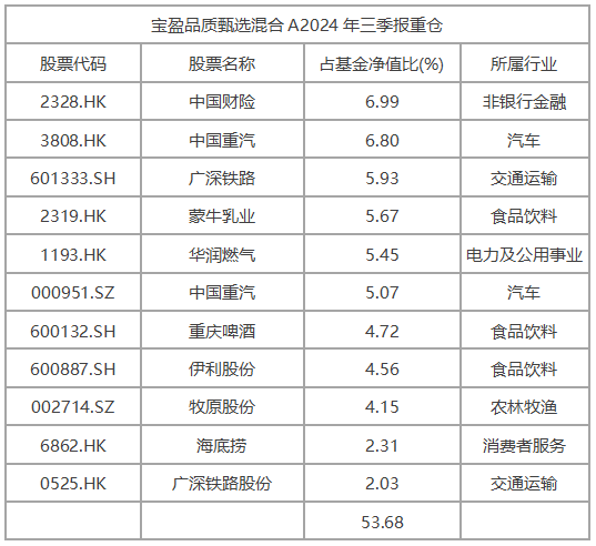 十大重仓股中,包括中财险、中重汽、广深铁路等,基金风格定位为大盘价值,这表明基金在选择投资标时倾向于那些具有稳定增长潜力价值型股票。