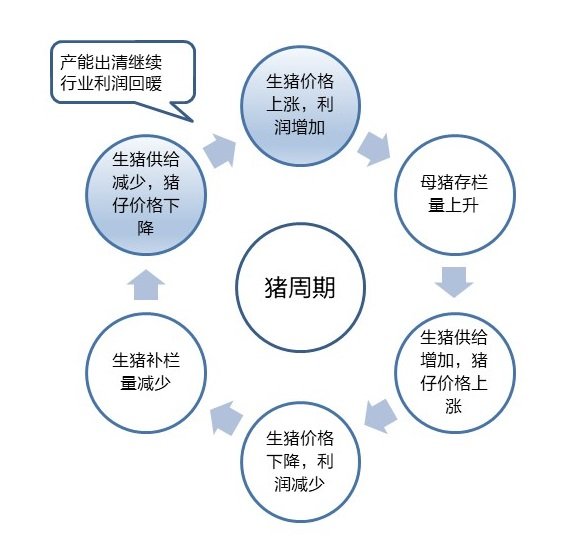 这个循环其实非常理解。猪肉价格高时候,养猪人多,一段时间猪肉供给增加,肉价跌,养猪亏钱令部分养殖户退,一段时间因供给短缺猪肉价格再度涨。周而复始,就形成了所谓“猪周期”。