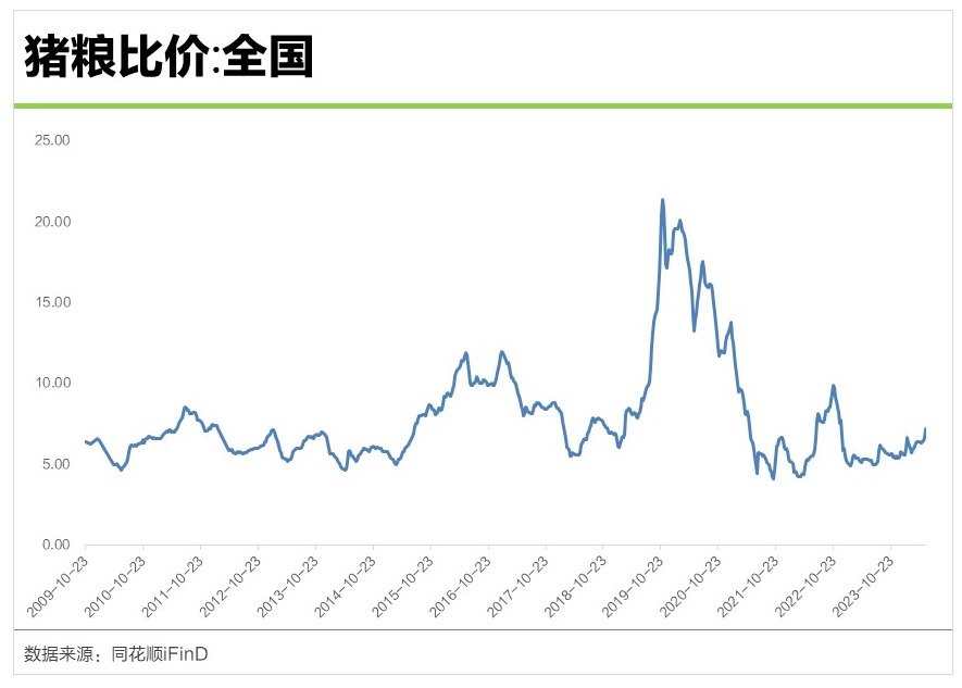 2024年4,全猪粮比是6.32,同比升23.2%。2022年12底以来,猪粮比一直处于6:1以,直到今年2才升至6:1以,期间14个,养猪企业一直处于亏损状态。