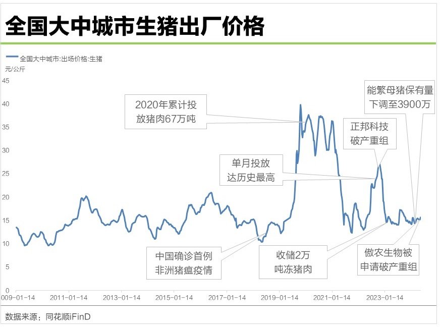 第一,养殖企业债务高筑、兼并重组,全行业产能收缩。2022年10,江西养猪龙头企业正邦科技破产重组。2024年5,福建猪王傲农生物被申请破产重组。