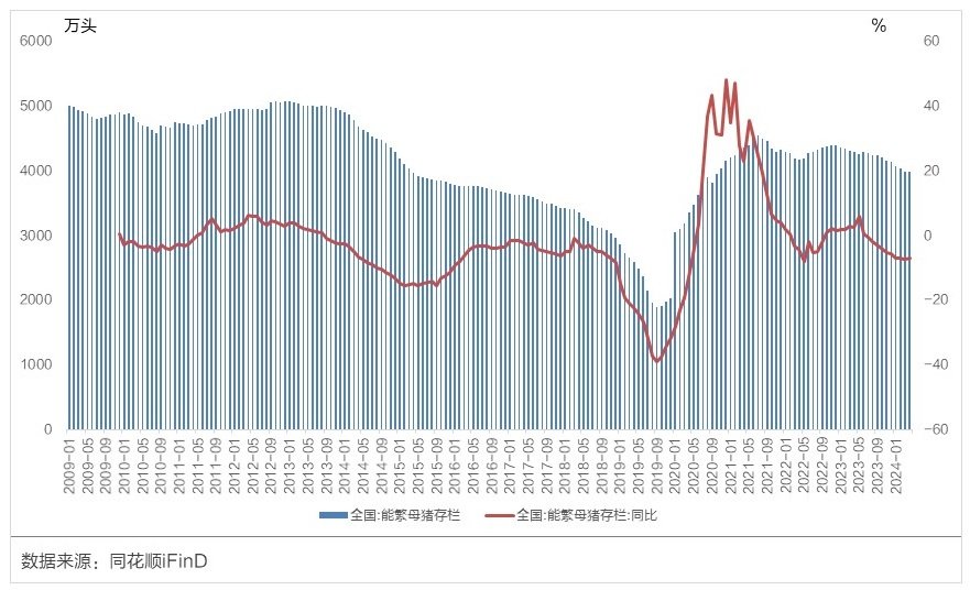 经过长时间清,今年4,能繁母猪数量已经跌破4000头。