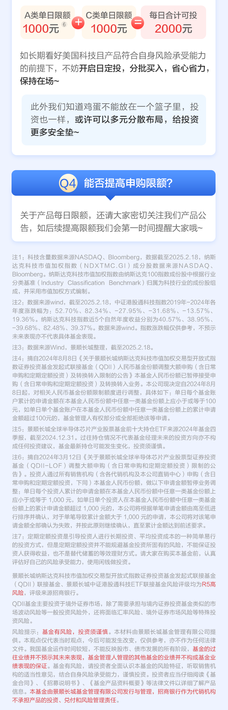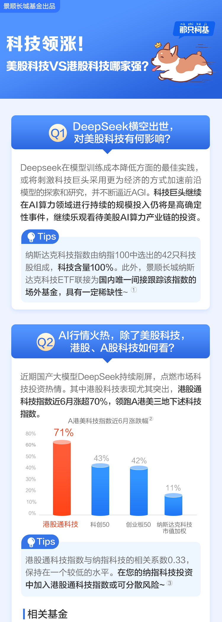 感谢大家对景顺长城纳斯达克科技ETF联接的认可和关注,纳指科技当前每日A/C/E份额加总最多可买300元。上周科技股引领市场,美股整体表现良好。DeepSeeK横空出世对美股科技有何影响?