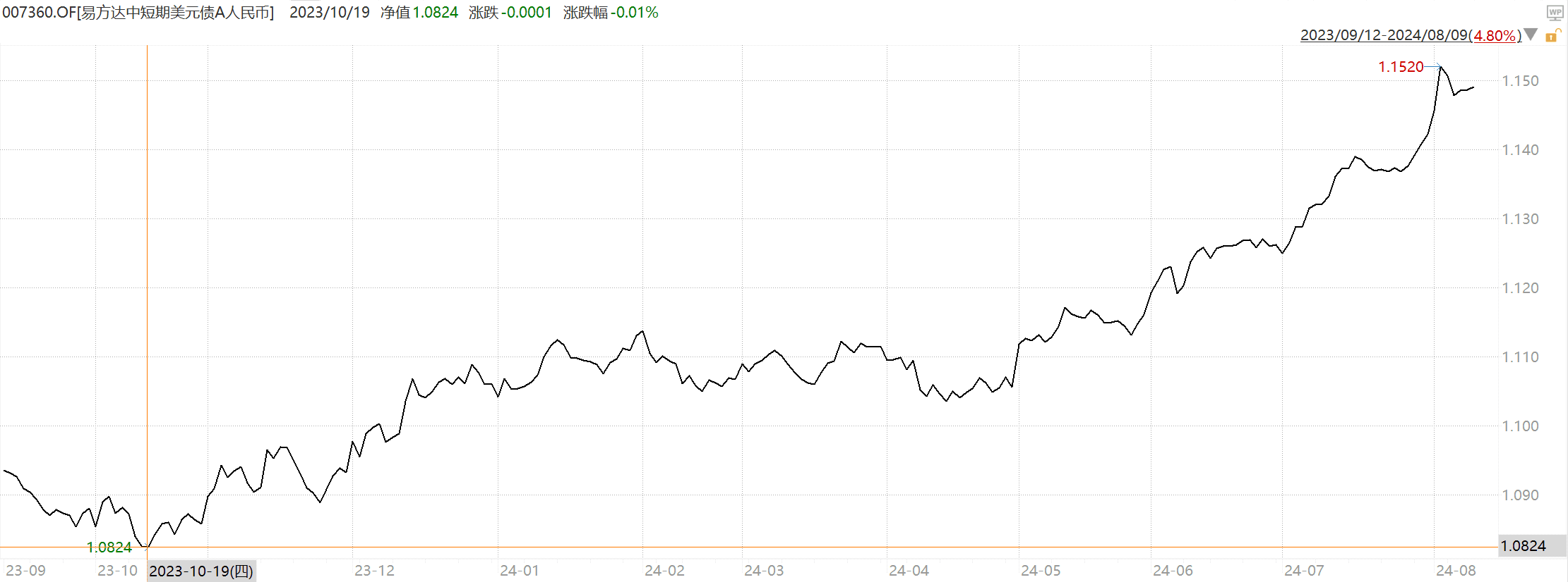 注:数据来源于Wind、基金定期报告,截至2024年813。易方达美元债人民币A产品代码007360,R3中风险。