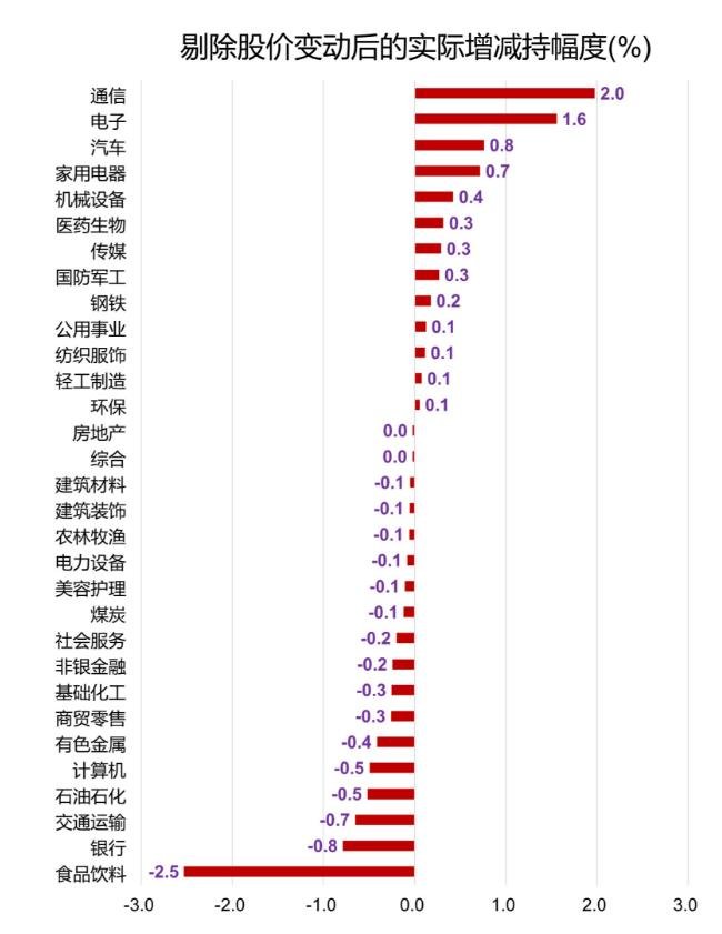 23Q2基金重仓股持股市值占比明显升行业为通信(环比+2.0pct)、 电子(+1.6pct)、汽车(+0.8pct):