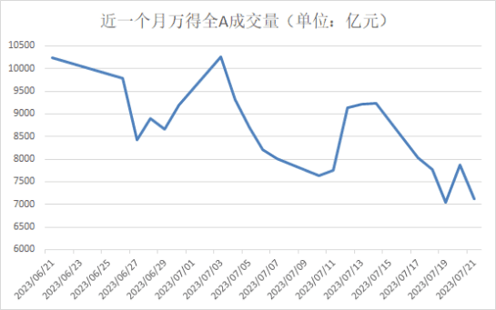 跌原因可参见712“战略积极战术谨慎,看长期怎么配”文章,另外,可以看到最近成交量也是急剧萎缩: