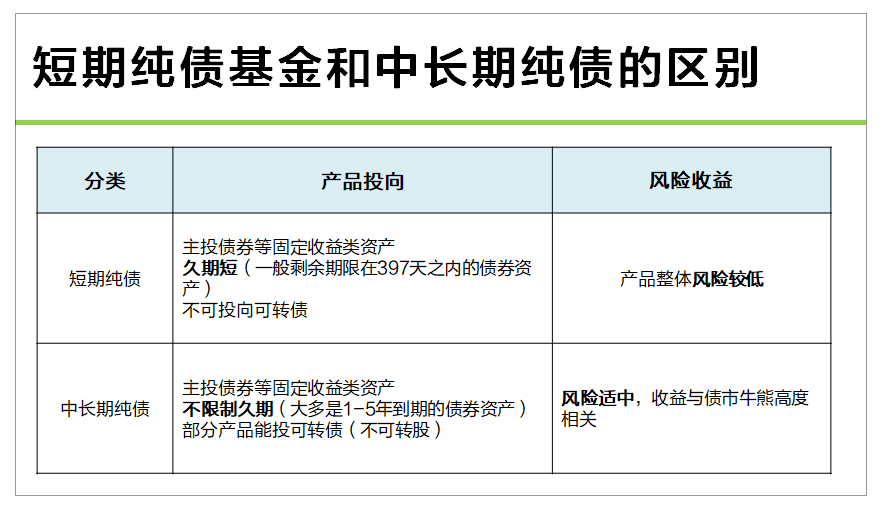 债市走牛,短债和中长债都会受益。两者区别在投资债券期限和波动性。