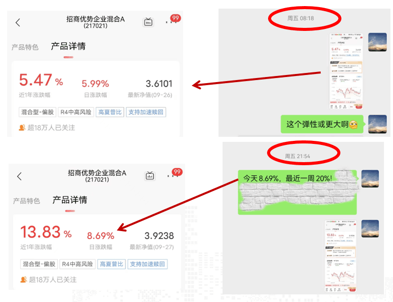 其实们在周五早8:18就给了提示,建议关注“商优势企业A”,周五当天该基金大涨了8%以!