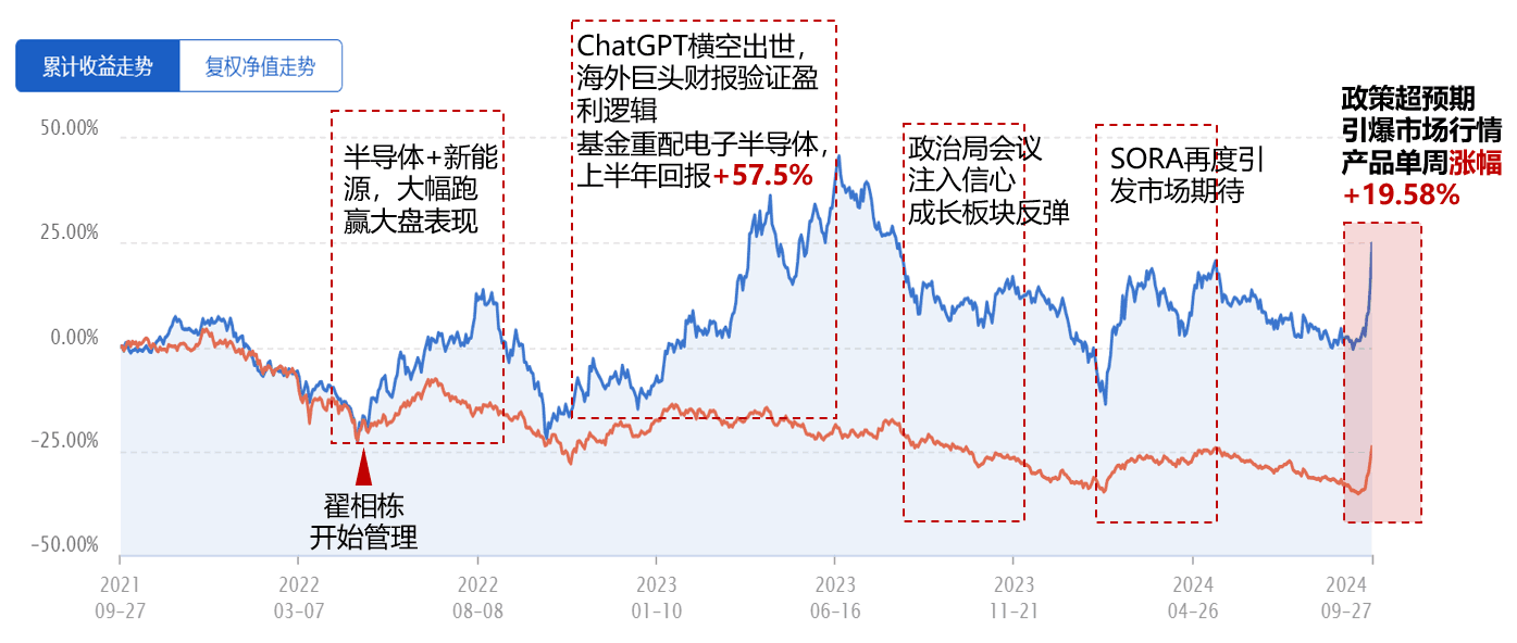 数据来源:wind,其中周度涨幅数据统计区间2024.9.23-9.27,同期沪深300涨幅15.70%,中证TMT指数涨幅15.39%;基金经理任职期间回报排名统计区间2022.4.29-2024.9.27。